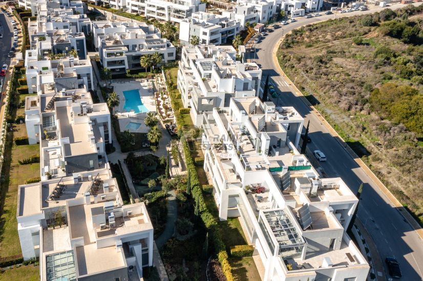 Perfectly positioned between Marbella and Estepona, the apartment enjoys a peaceful setting surrounded by nature while remaining close to top golf courses, international schools, and all essential amenities. Its south-facing orientation fills the home with natural light throughout the day, enhancing the contemporary design and inviting atmosphere.